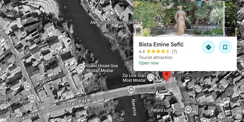 Today, travelers can see a bronze monument dedicated to Emina, located near the authentic Muslibegović House in the old town. The statue was unveiled in 2010 and represents the moment that inspired the poem Emina as a symbol of elegance, youth, and timeless beauty.